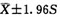 ),标准差(S)。区间[ -1.96s,X+1.96S]所代表的含义为()