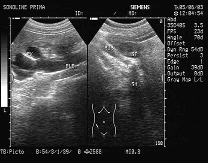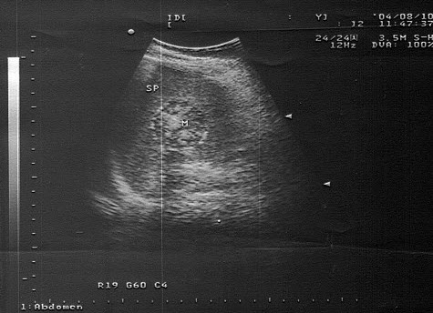 男,27岁,上腹疼痛。声像图如图所示。结合超声声像图,诊断为()