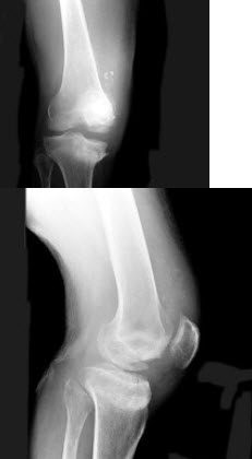 男,30岁,右膝关节酸胀,疼痛不适5个月,X线检查如图所示,最可能的诊断是()