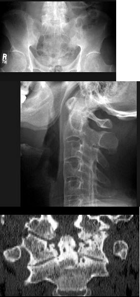 男,21岁,腰部不适,晨起加重半年余,X线检查如图,最可能的诊断是()