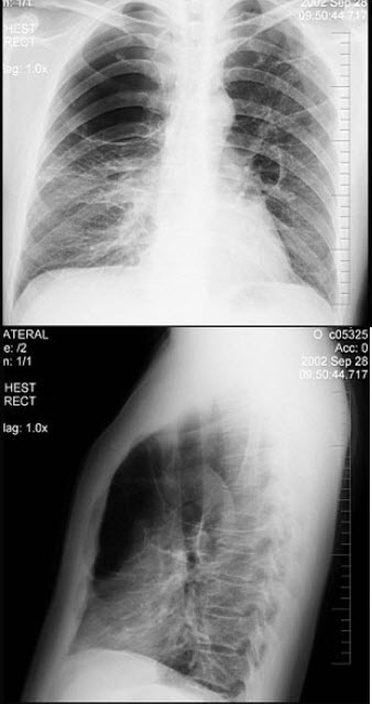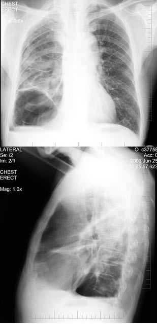 患者48岁,男性,常感胸闷气逼,近1个月渐加重,X线检查见图。最合适的诊断是()