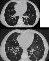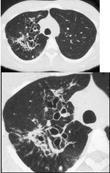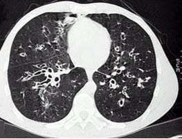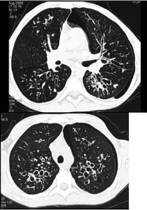 患者男性,48岁,反复咳嗽、咳黄痰30余年,间断咯血4次。此次因咳嗽加重,发热入院。