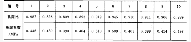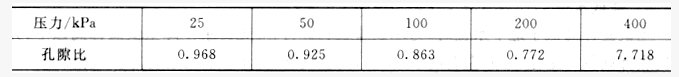 某黏土试样天然孔隙比为0.987,固结试验各级压力下,固结稳定的孔隙比如下表所示,该土样的压缩系数及压缩模量分别为()。