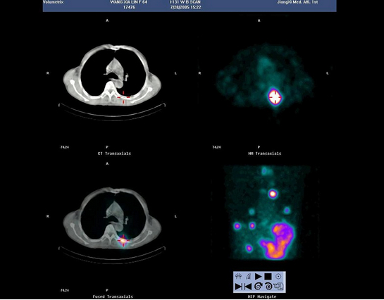 63岁男性,甲状腺滤泡状癌术后3年,行I全身显像及SPECT/CT图像融合如图,正确的诊断是()