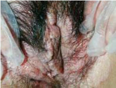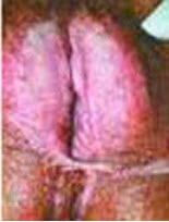 关于如图所示外阴硬化性苔藓,下列描述正确的是()