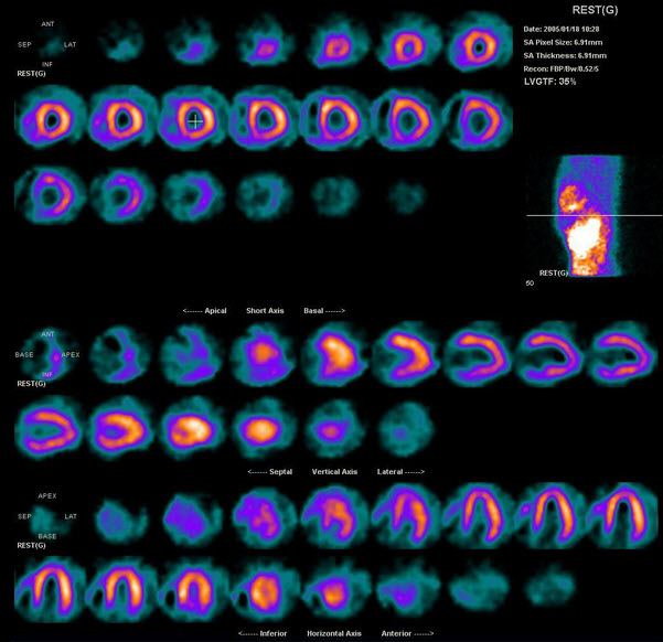 一患者突发心前区压榨痛2小时,行Tc-PYP显像如图,正确的描述是()