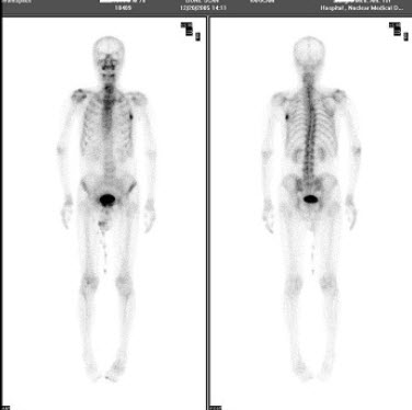 283、单项选择题 骨显像图出现肺、胃和肾放射性摄取增加,常见于哪种疾病()
