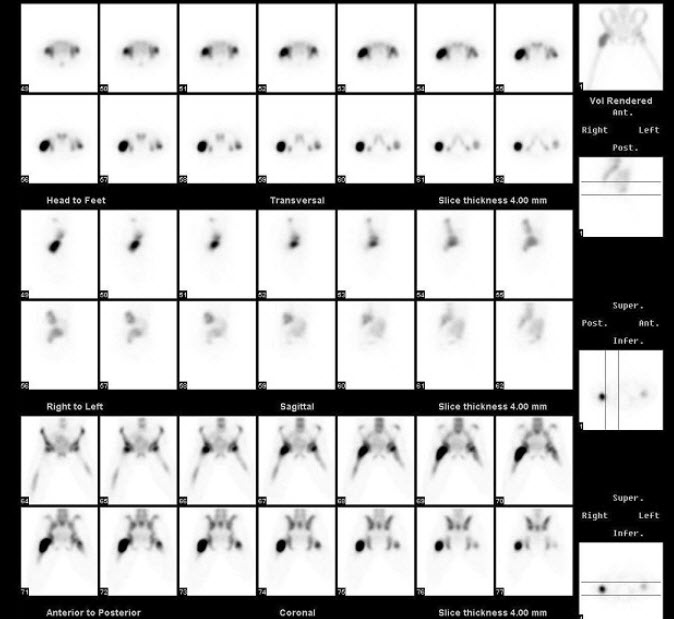 一患者的静息平衡法门控心室显像如图,正确的诊断是()
