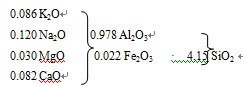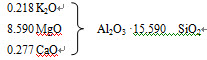 计算题:某瓷厂的坯用原料的化学组成,坯料配方如下:试计算此坯料的化学组成。