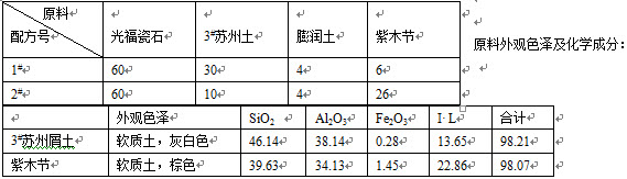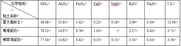 坯用原料的化学组成: