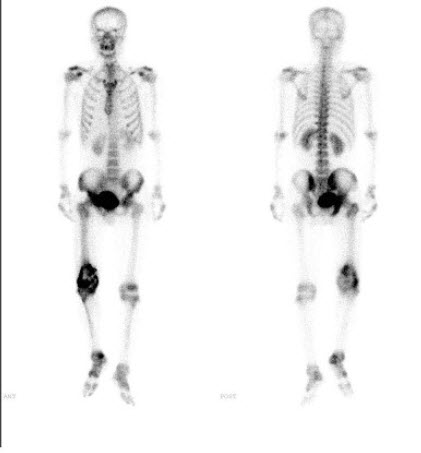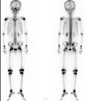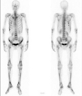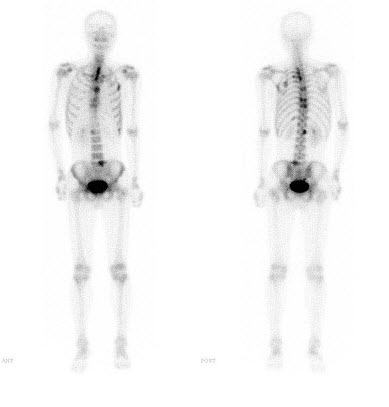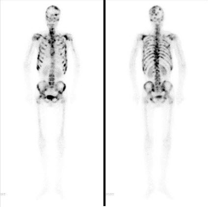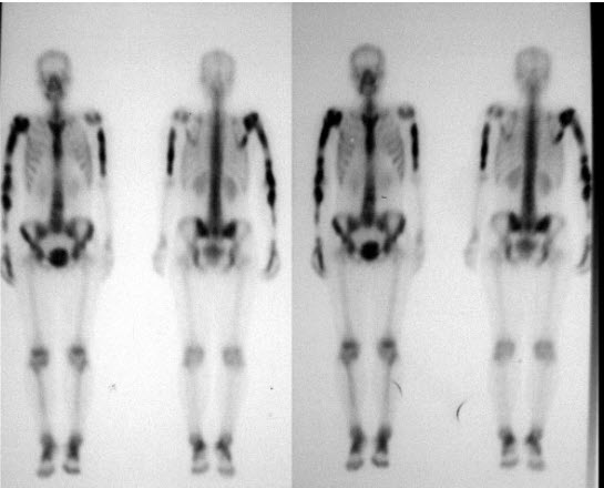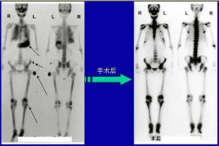 男,42岁,胆囊癌术后1年,无明显不适,行全身骨显像如图,可能的诊断是()