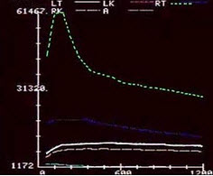 一患者的99Tcm-MAA下肢深静脉早期、延迟显像如图,正确的诊断是()