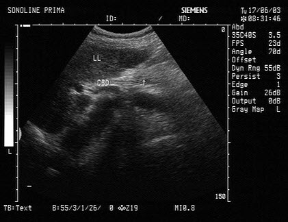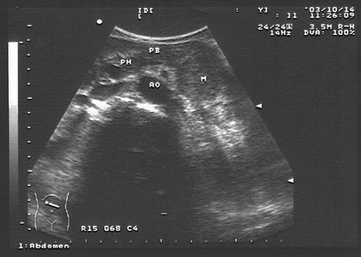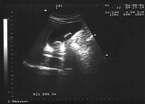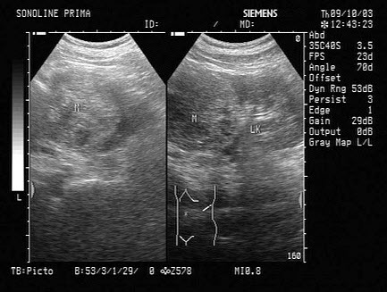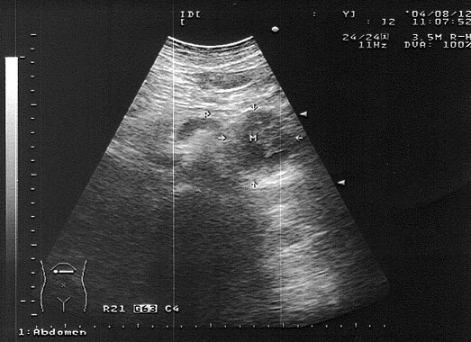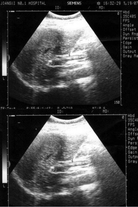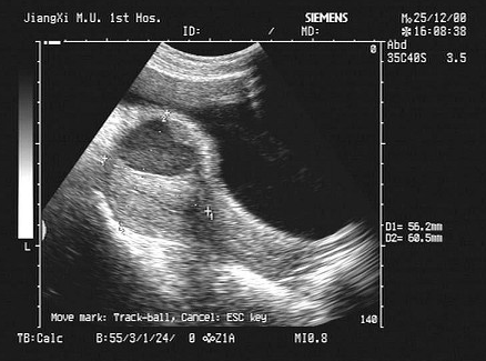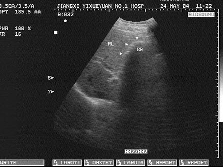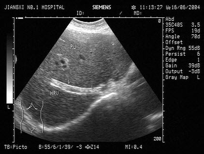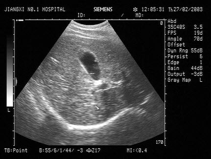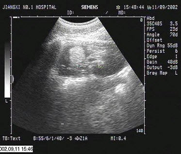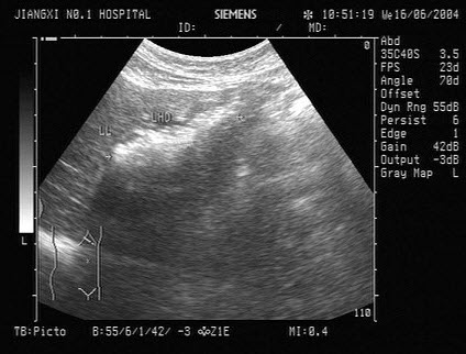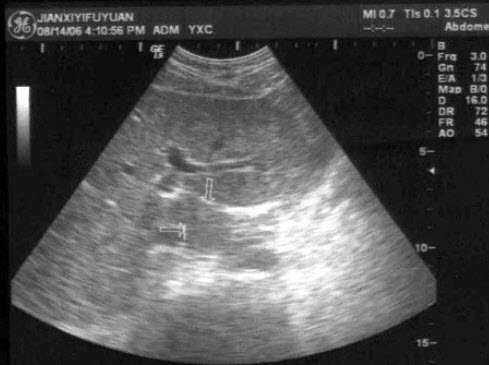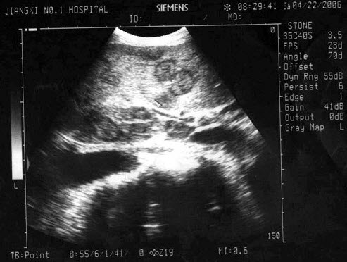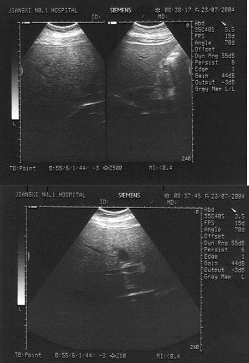 女,51岁,纳差、消瘦。结合超声声像图,诊断为()
