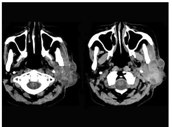 2、单项选择题 鼻咽癌病人CT显示咽旁间隙向哪个方向移位()