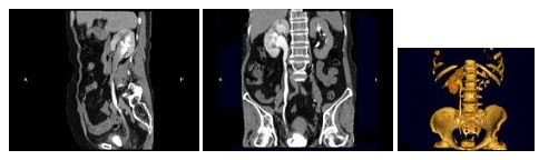 男,20岁,右腰部胀痛不适,MRI如图示,下列说法正确的是()