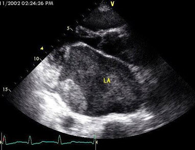某患者,胸部不适,可见二尖瓣面容,超声心动图检查如图,心腔内异常光团考虑为()