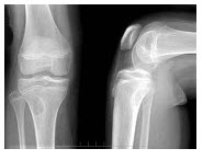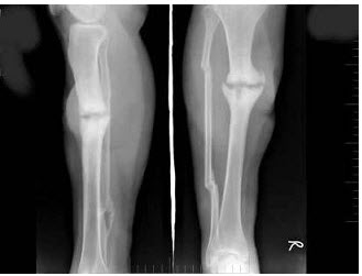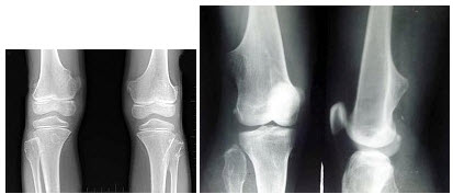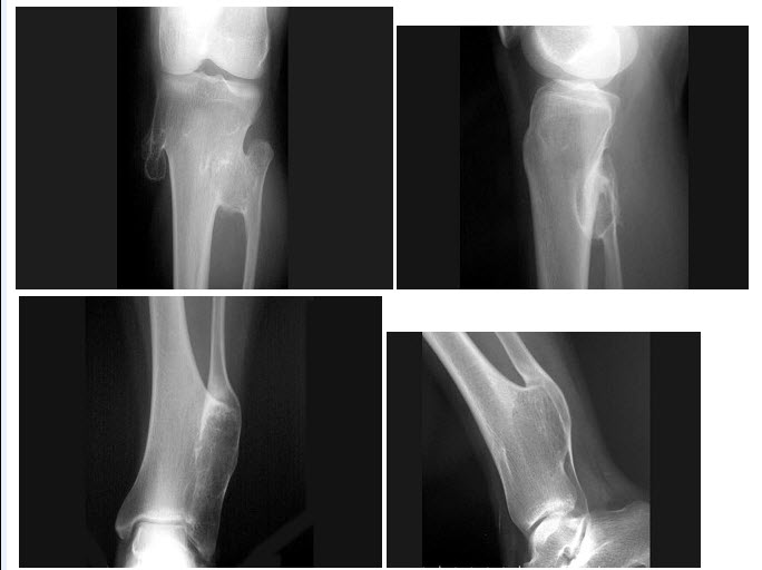 男,14岁,偶然发现双膝部肿块1天,双膝关节摄片如图,最可能的诊断是()