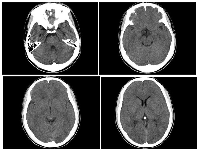男,23岁,近日感头痛、头晕,CT检查如图,最可能的诊断为()