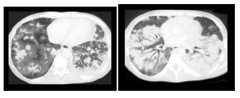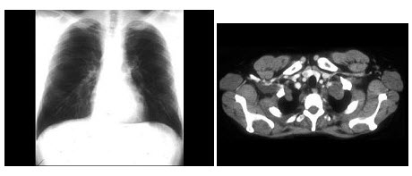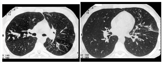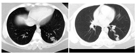 某前列腺癌患者治疗后复查胸部CT如下图所示,则应诊断为()