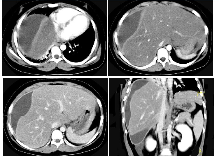 男,12岁,发热、右上腹痛、压痛,影像检查如图,最可能的诊断是()