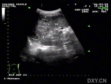 女,25岁,因急性胰腺炎禁食5天。声像图如图所示。结合超声声像图,诊断为()