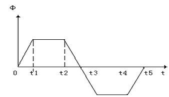 设穿过线圈中的磁通Φ随时间作梯形变化,如图所示。试问线圈中的感应电动势随时间如何变化?