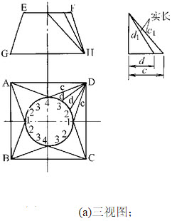 2、问答题 绘图题:作对称“异向等径三通”的展开图。