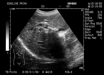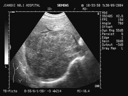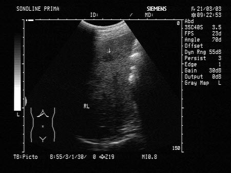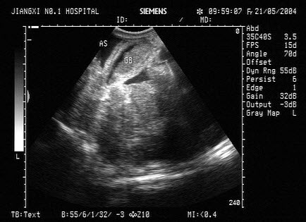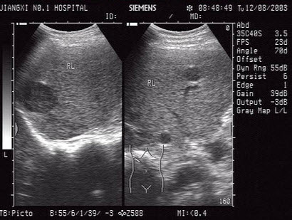 女,51岁,乏力,右上腹痛半个月。结合超声声像图,诊断为()