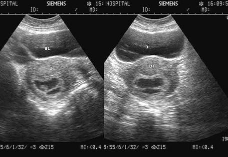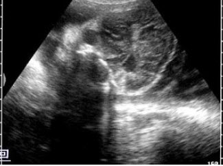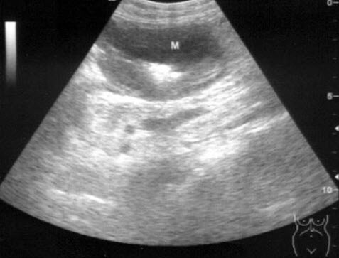 某患者右下腹痛,血尿,根据超声声像图,最可能的诊断为()