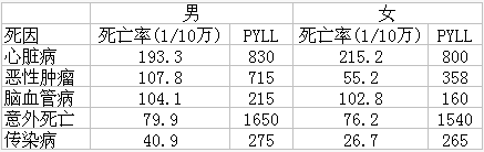 某地1984年几类疾病的死亡率与潜在减寿年数如下: