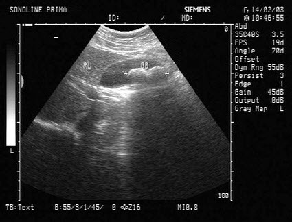 男,37岁,健康体检,偶感上腹不适。声像图如图所示,诊断为()