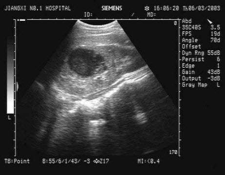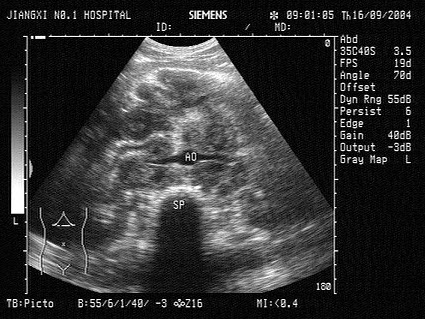 患者,女,35岁,有急性胰腺炎病史,现感上腹不适。结合中上腹超声声像图表现,诊断是()