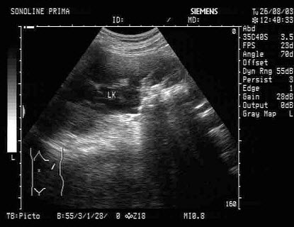 如图所示,双肾结构清晰,左肾体积小,该病例最可能诊断是()
