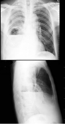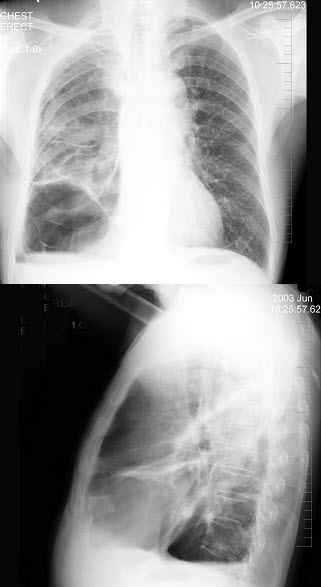 男,74岁,咳嗽,咳痰1月余,咯血丝痰1周伴胸痛,胸片如图,最可能的诊断为()