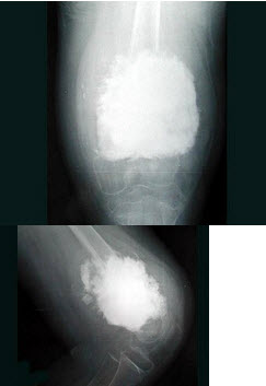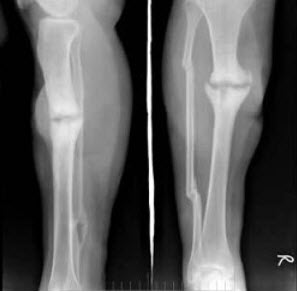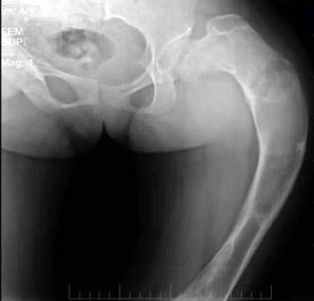 女,10岁,左大腿疼痛,夜间加重,肿胀明显,结合图像,最可能的诊断是()