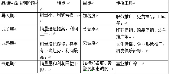 8、问答题 品牌生命周期各阶段的特点、传播目标是什么?各阶段适用的传播工具有哪些?请用表格形式简要汇总表述。