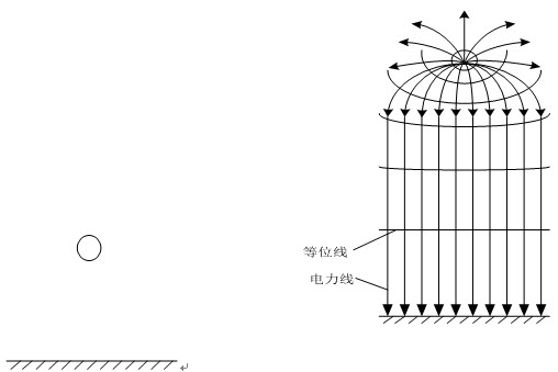 1、问答题 识绘题:图中为单根带电导线截面和地面,绘出导线下空间电位分布图,包括等位线和电力线。