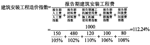 16、单项选择题 已知某项目报告期实际建安费为1000万元,其中人工费150万元,材料费480万元,施工机械使用费120万元,措施费100万元,间接费80万元。各单项价格指数为人工费指数105%,材料费指数102%,施工机械使用费指数110%,措施费指数为106%,间接费指数为108%,则该建筑安装工程造价指数为()。