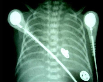 新生儿出生后出现气急、口吐白沫,呼吸微弱。床边X光片检查如图,最可能的诊断为()