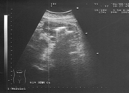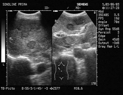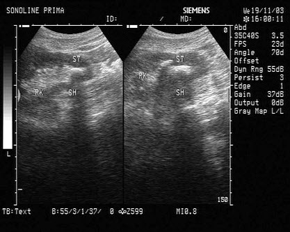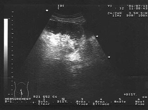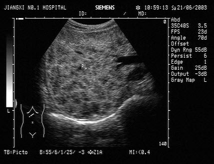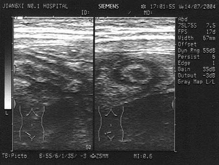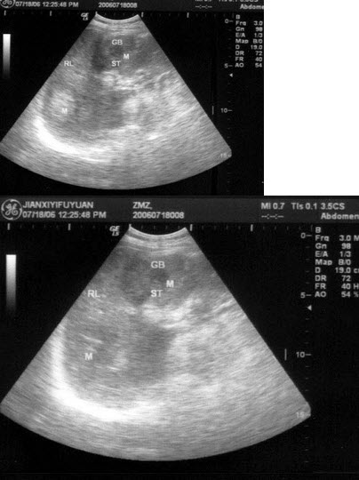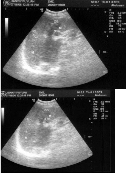 男,67岁,呕血,有胃溃疡病史,治疗后可缓解。根据超声声像图诊断为()
