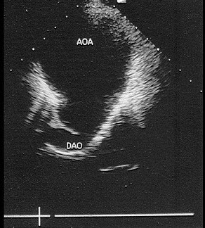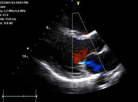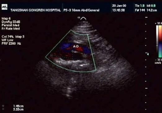 299、单项选择题 患者陈某,有风湿性关节炎病史,心脏听诊主动脉瓣区有舒张期杂音,X线胸片示左心室扩大,心电图示左心室高电压,疑有主动脉瓣关闭不全,用彩色多谱勒技术检查应有什么表现()