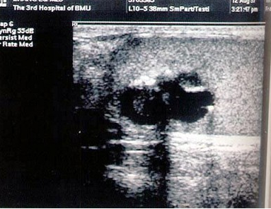 14、单项选择题 结节性甲状腺囊肿的超声特点,哪一项是错误的()