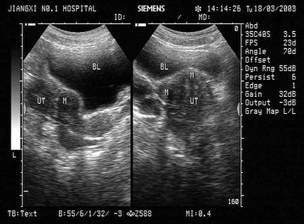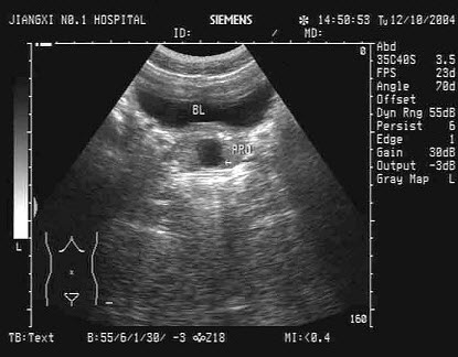 16、单项选择题 超声声像图上膀胱与直肠间的两个袋状低回声结构是()