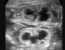 图为孕34周的胎儿声像表现。根据图像特点,最可能的诊断为()