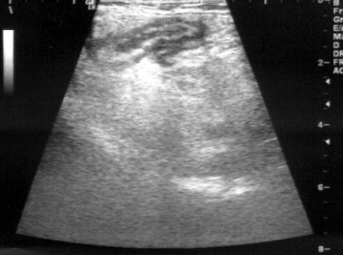男,18岁,外伤1小时就诊。结合超声声像图,诊断为()