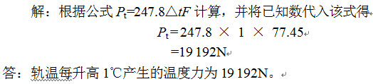 1、问答题 计算题:已知60kg/m钢轨断面面积F=77.45cm²,计算轨温每变化1℃产生的温度力。