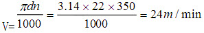 21、问答题  在钢板上钻Φ22mm的孔,若钻床转速为350r/min,求切削速度。