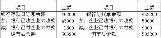 [计算分析题(简答)]2014年6月30日,某企业银行存款日记账的账面余额为100000元,银行对账单余额为105000元,经逐笔核对,发现有下列未达账项: