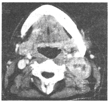 男,45岁,右侧颌下扪及一包块约4个月,无痛,PE:包块质硬,表面欠光整,移动度较差,CT如图所示,最可能的诊断是()