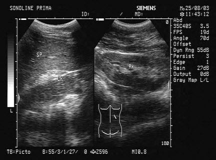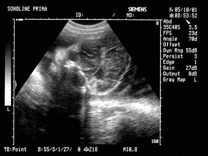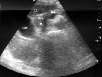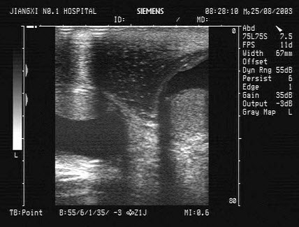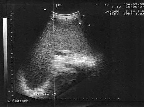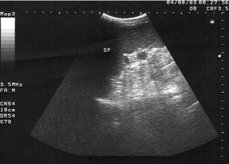 男,18岁,外伤1小时就诊。结合超声声像图,诊断为()